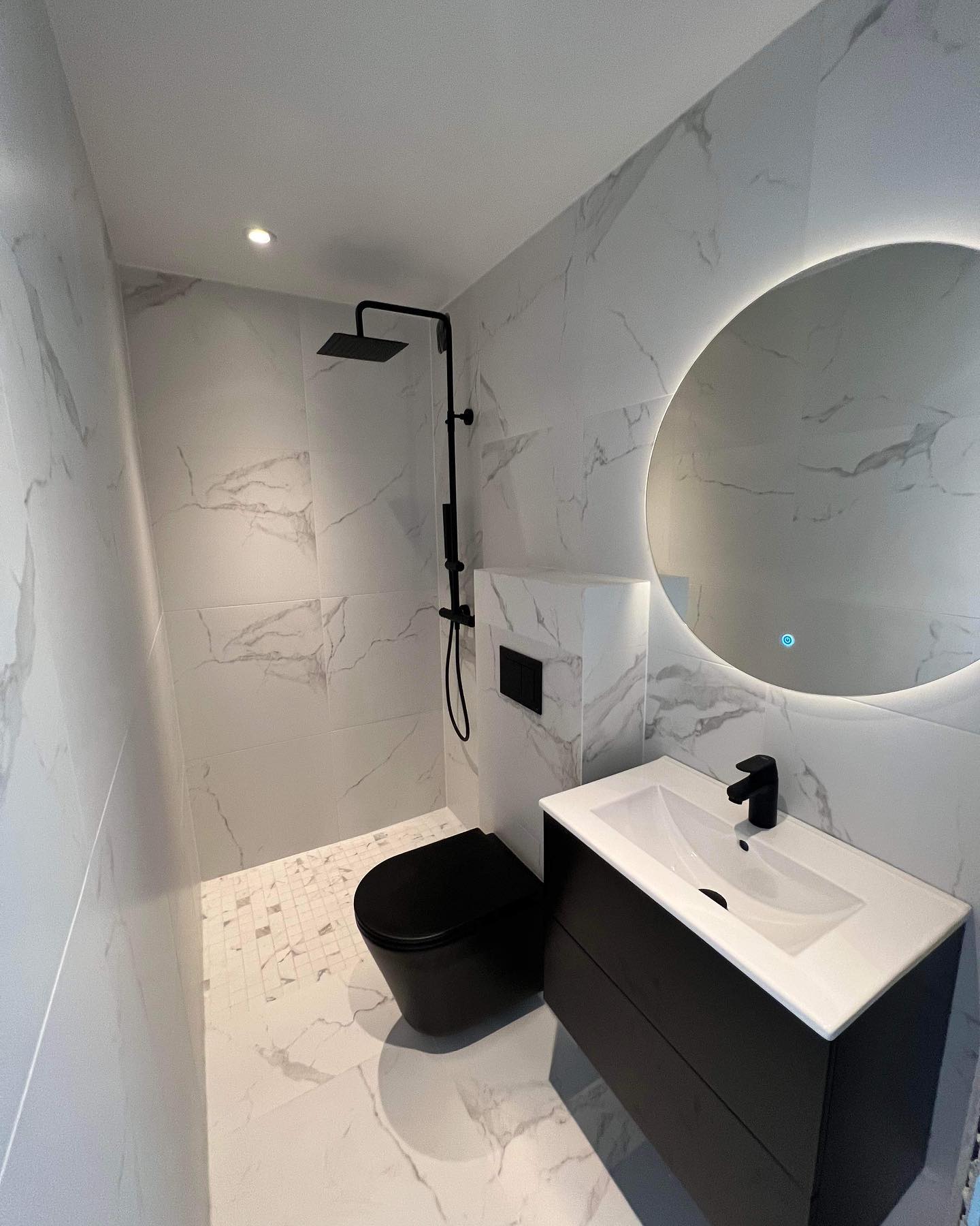 Vi utfører både membranarbeid, flislegging og totalrenovering av bad.